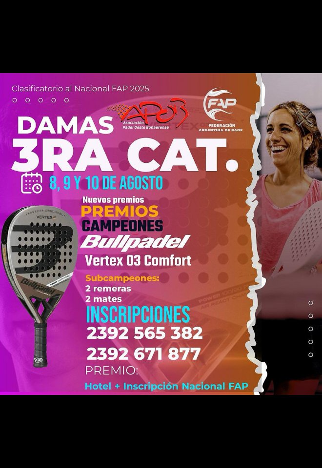 »» Evento: 3RA CAT DAMAS APOB 2025 2DA FECHA »» Localidad: Trenque Lauquen »» Fechas: 08/08/2025 al 10/08/2025