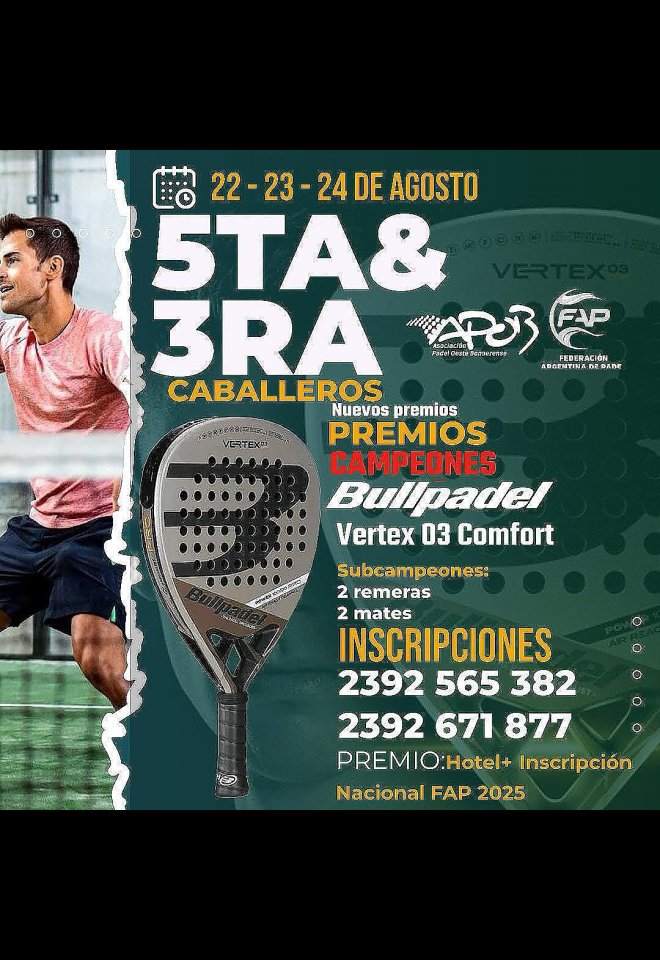 »» Evento: 5TA Y 3RA CAT HOMBRES APOB 2025 1RA F CLAUSURA »» Localidad: Trenque Lauquen »» Fechas: 22/08/2025 al 24/08/2025