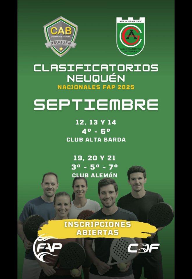 »» Evento: CLASIFICATORIOS 2DA FECHA IMPARES - NEUQUEN »» Localidad: Neuquén »» Fechas: 19/09/2025 al 21/09/2025