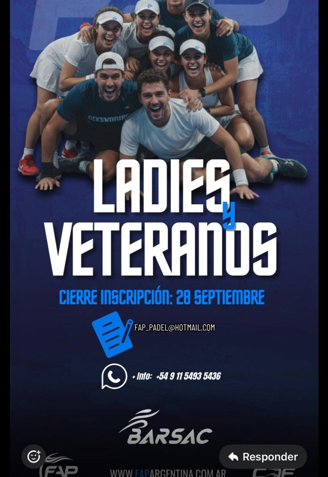 »» Evento: NACIONAL LADIES & VETERANOS - SEDE CORDOBA »» Localidad: Córdoba »» Fechas: 10/10/2025 al 13/10/2025