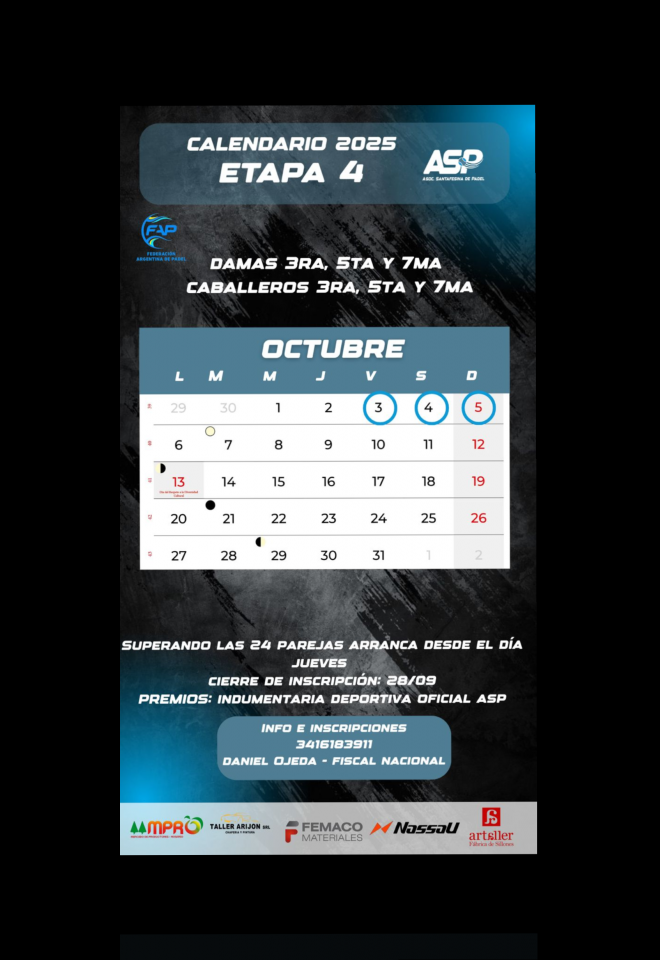 »» Evento: ETAPA Nº4 CATEGORIAS LIBRES IMPARES - ASP 2025 »» Localidad: Rosario »» Fechas: 02/10/2025 al 05/10/2025